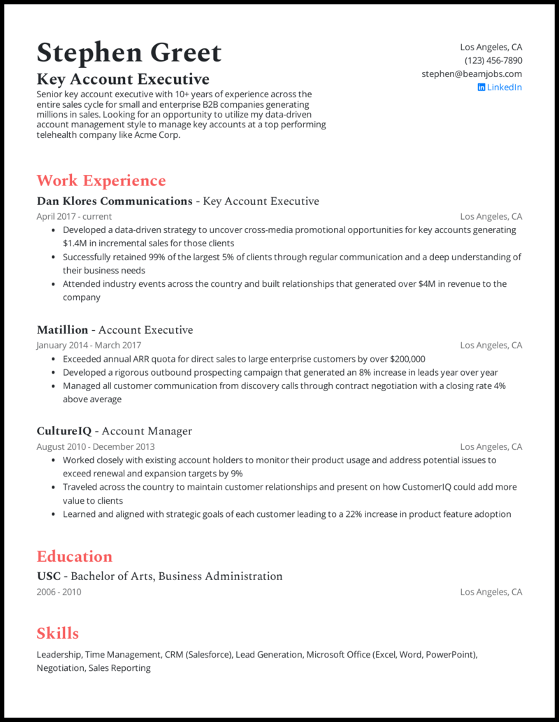 3 Account Executive Resume Examples For 2021 from cdn.buttercms.com Use this example for reference as you create your own resume or use this easy resume builder that will guide you through. Resume examples see perfect resume samples that get jobs. Check out our free resume samples for inspiration. Resume builder resume templates resume examples. Use these resume examples to build your own resume using online resume builder by hiration. Get expert advice as you write. Write the perfect resume with help from our resume examples for students and professionals. Operate a pc/image station to obtain and extract information;